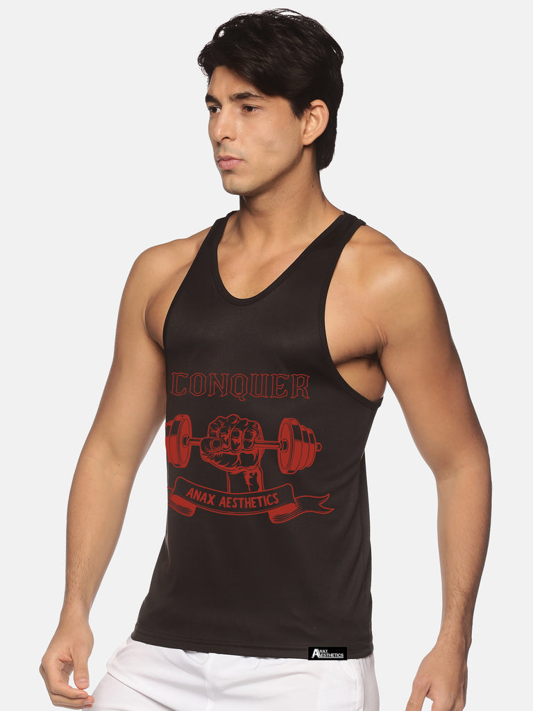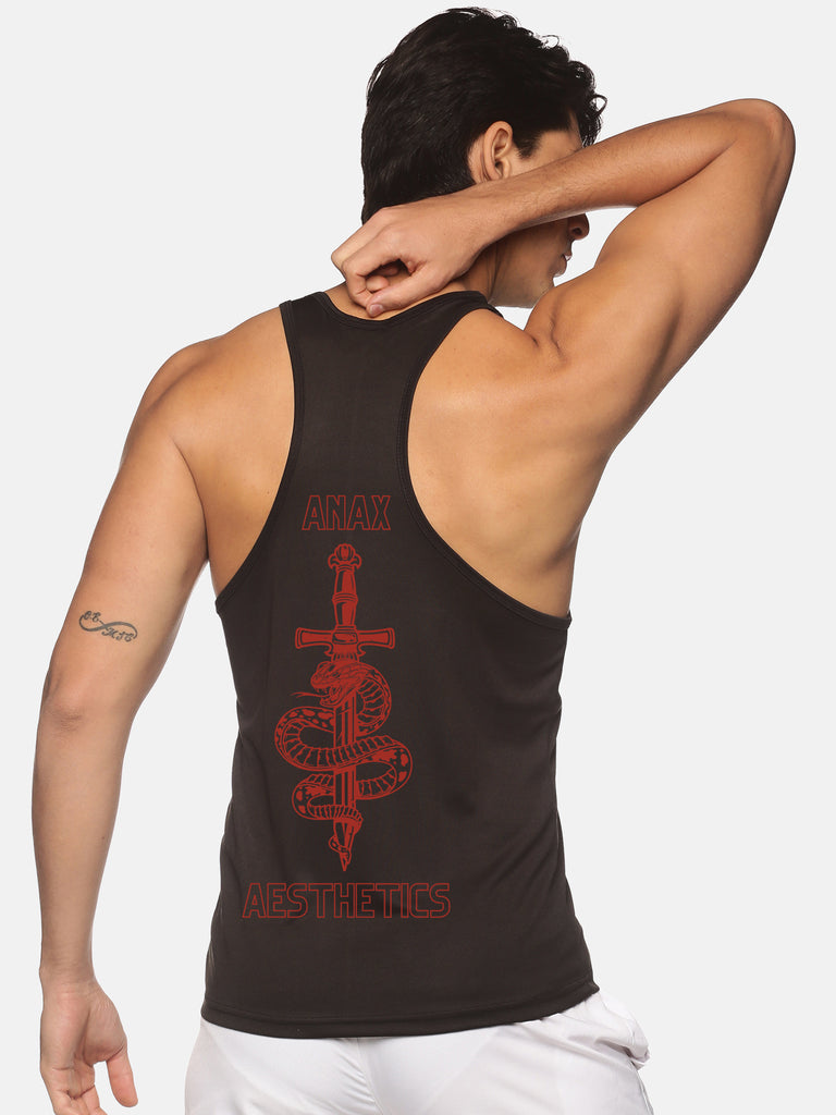 This stringer made by ANAX AESTHETICS is suitable for all the athletes who like to sweat it in the gym or wear it outdoors while performing cardio or any other sports activity. The black color with red sublimation print gives the stringer a vibrant look and the dry-tuff sweat absorbent material of the stringer keeps you cool and will make you feel comfortable throughout your workout.